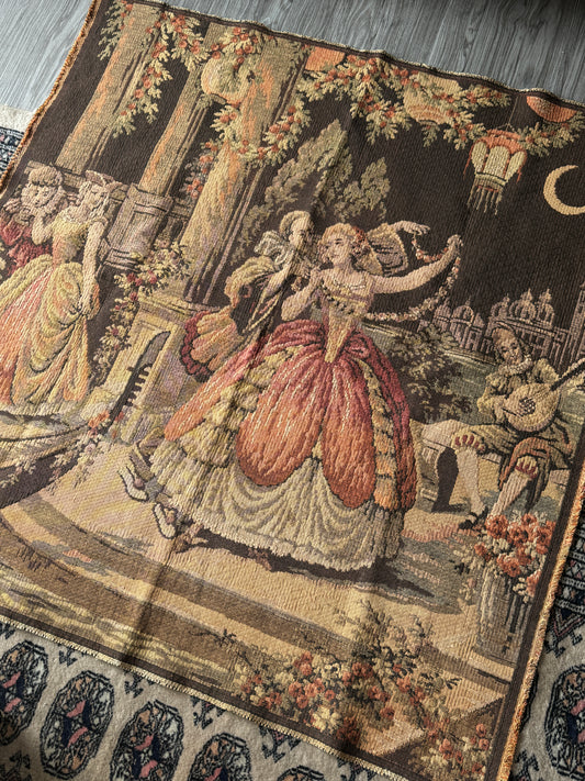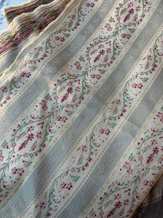 Dreamy Vintage French Floral Basket Stripe Upholstery Fabric