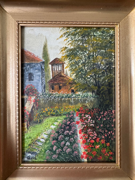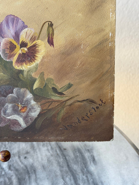 Early 20th Century Original Floral Oil Painting, Signed, Pie Crust Frame