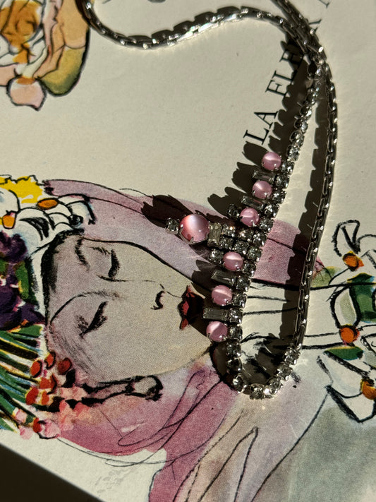 Dainty Vintage Rhinestone & Pink Bead Necklace