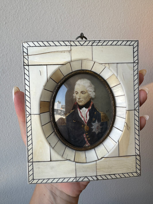 Antique Italian Micro Mosaic Picture Frame – Oval Millefiori Glass Floral Inlay – Brass Miniature Photo Frame
