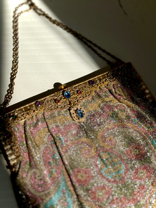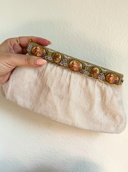 Vintage French Cameo Clutch Evening Bag