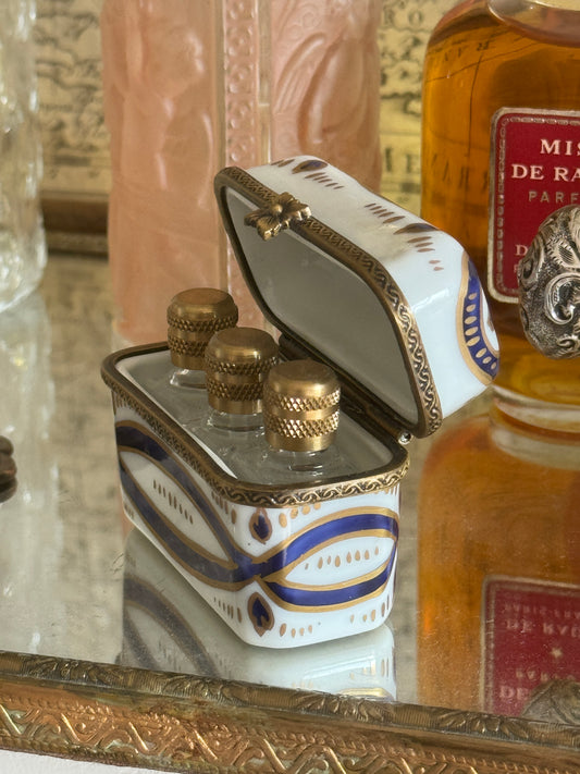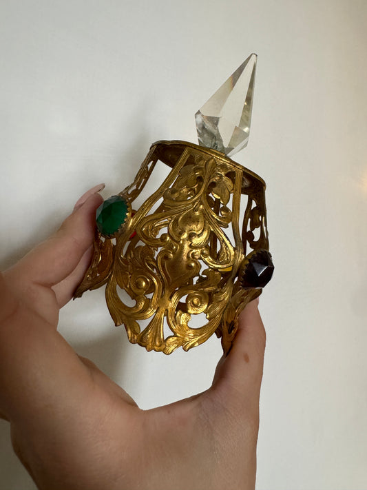 Antique French Beveled Glass Jewelry Box with Gold Gilt Ormulu Filigree