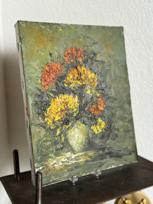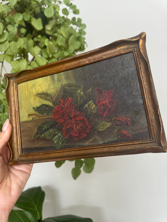 Early 20th Century Original Floral Oil Painting, Signed, Pie Crust Frame
