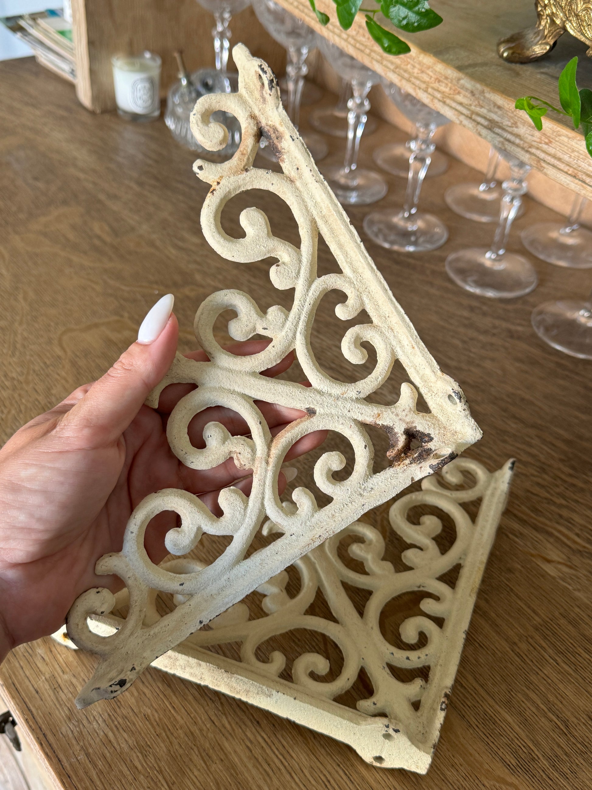Lovely antique cast iron shelf supports. Makes for a very easy shelf, just add a plank and voila!