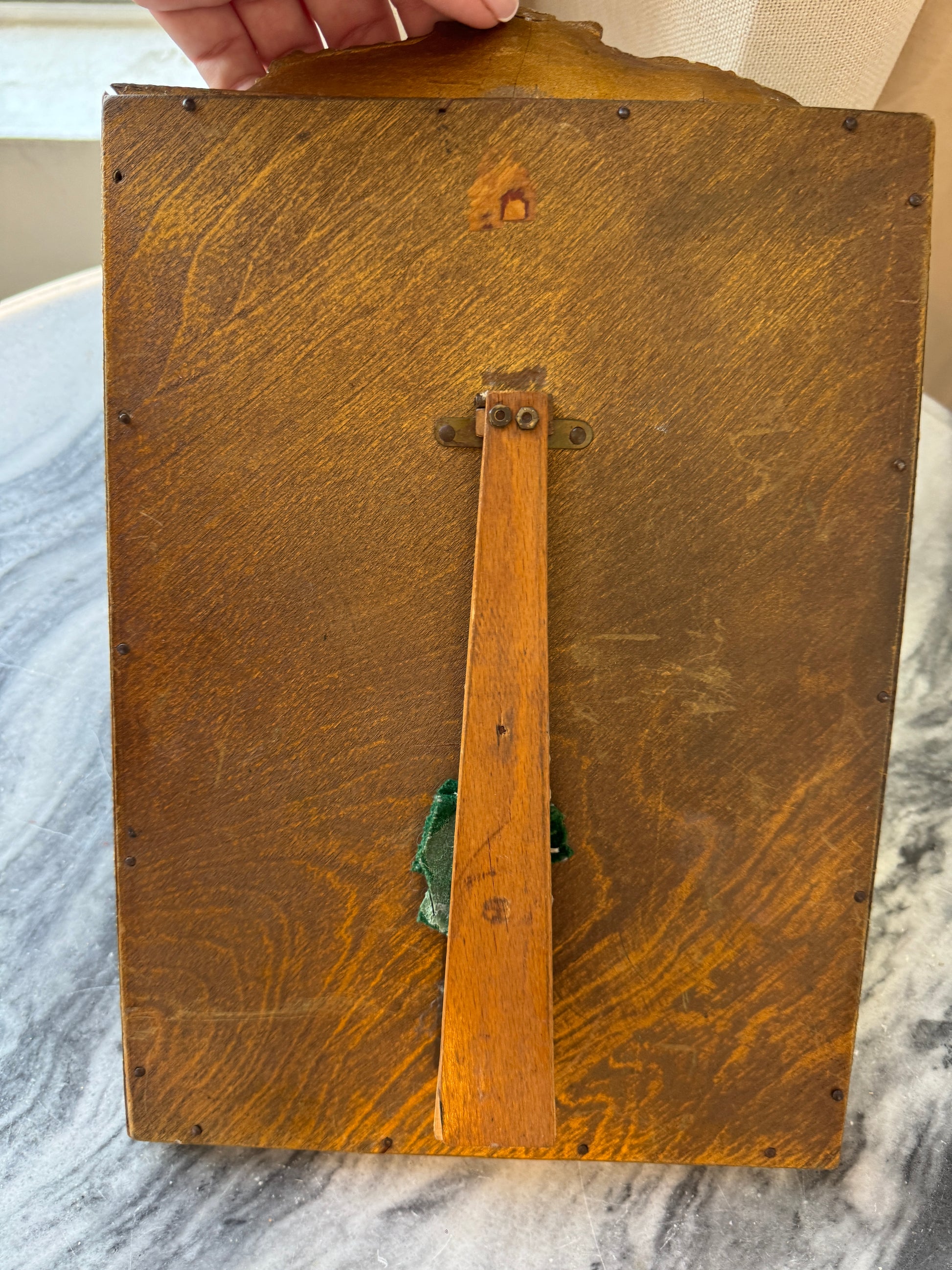 Bring timeless elegance to your vanity or dresser with this stunning vintage rectangular tabletop mirror, crowned with a delicate hand-painted floral crest. Likely dating to the 1930s or 1940s, this piece reflects the romantic charm of the Hollywood Regency and Art Deco eras, making it a perfect addition to any vintage-inspired space.