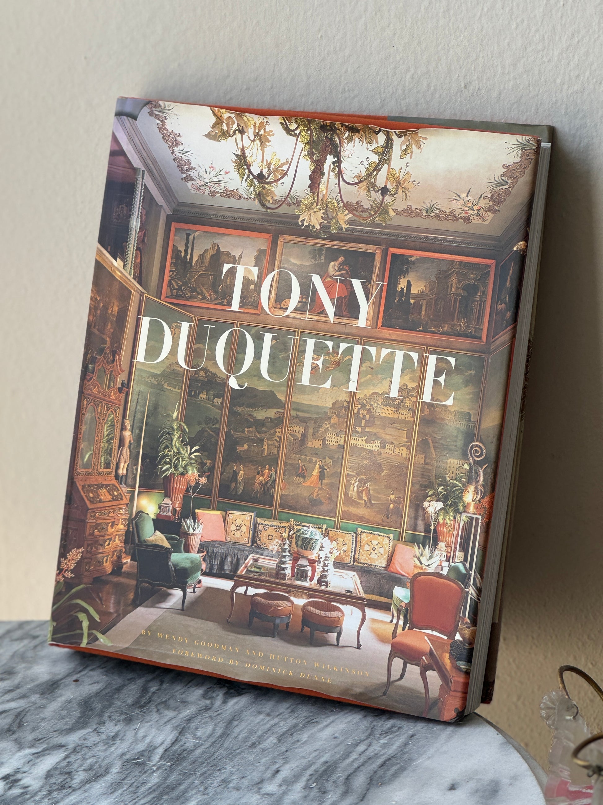 Absolutely lovely Tony Duquette coffee table book. Front paper is slightly bent on top and bottom, but I’m pressing it between books to flatten it out. Going online for $150! 4 lbs and 15oz