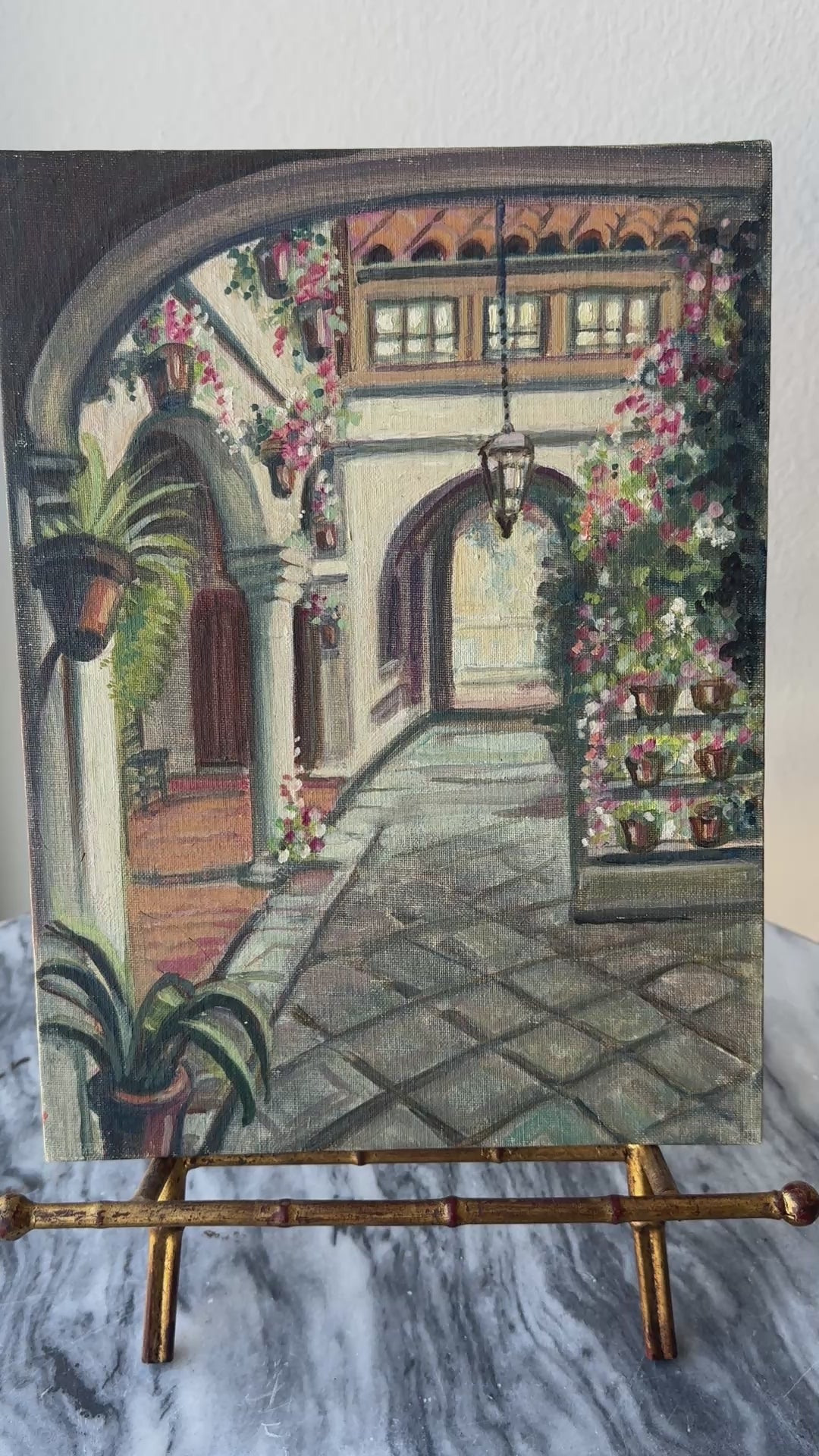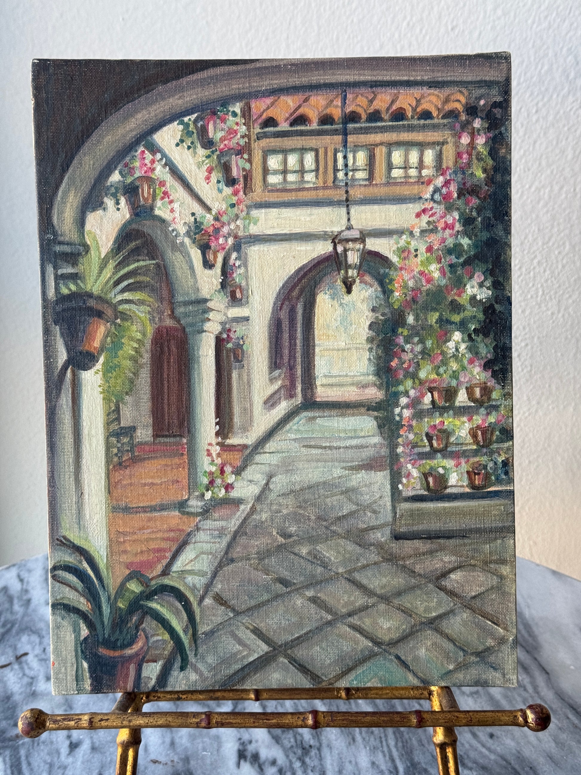 Beautiful vintage painting depicting a Spanish interior. Stunning!